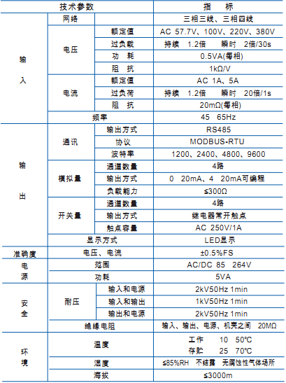 三相電壓三相電流組合表技(jì)術參數(shù)
